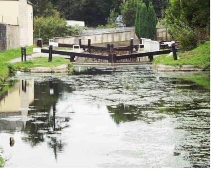 Griffin Mill Lock is the fourth lock up from Wallbridge with a wharf above it to unload coal for the mill. It has a rise of ten feet and is a wide lock taking vessels up to sixteen feet, one inch width and sixty-eight feet long. All locks up to Brimscombe Port were built to this size to take Severn Trows. It is probable that the lock was completed in 1784. We know that GM lock was being worked on in 1784 as it is recorded in the records that labourer Simon Hamer received £39 17s 7 ½ d for ‘day work and walling at Mr Griffin’. The Red Lion lock in Chalford further up the valley bears the date 4 December 1784, and the name of the mason, Herbert Stansfield.