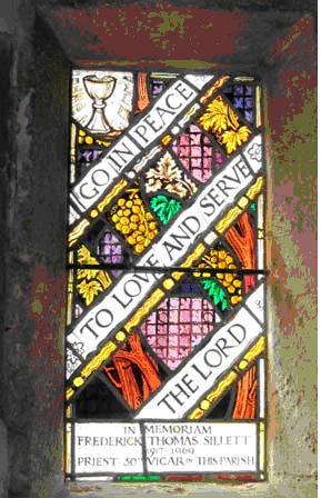 Two small windows in the porch remember a much-loved Vicar, Rev. Frederick Sillett (1963 – 1969). Over the porch a sundial dated 1799 recalls the Biddle family, relatives of John Biddle (1615 – 1662) a Wotton man who is recognised as the Father of Unitarianism.